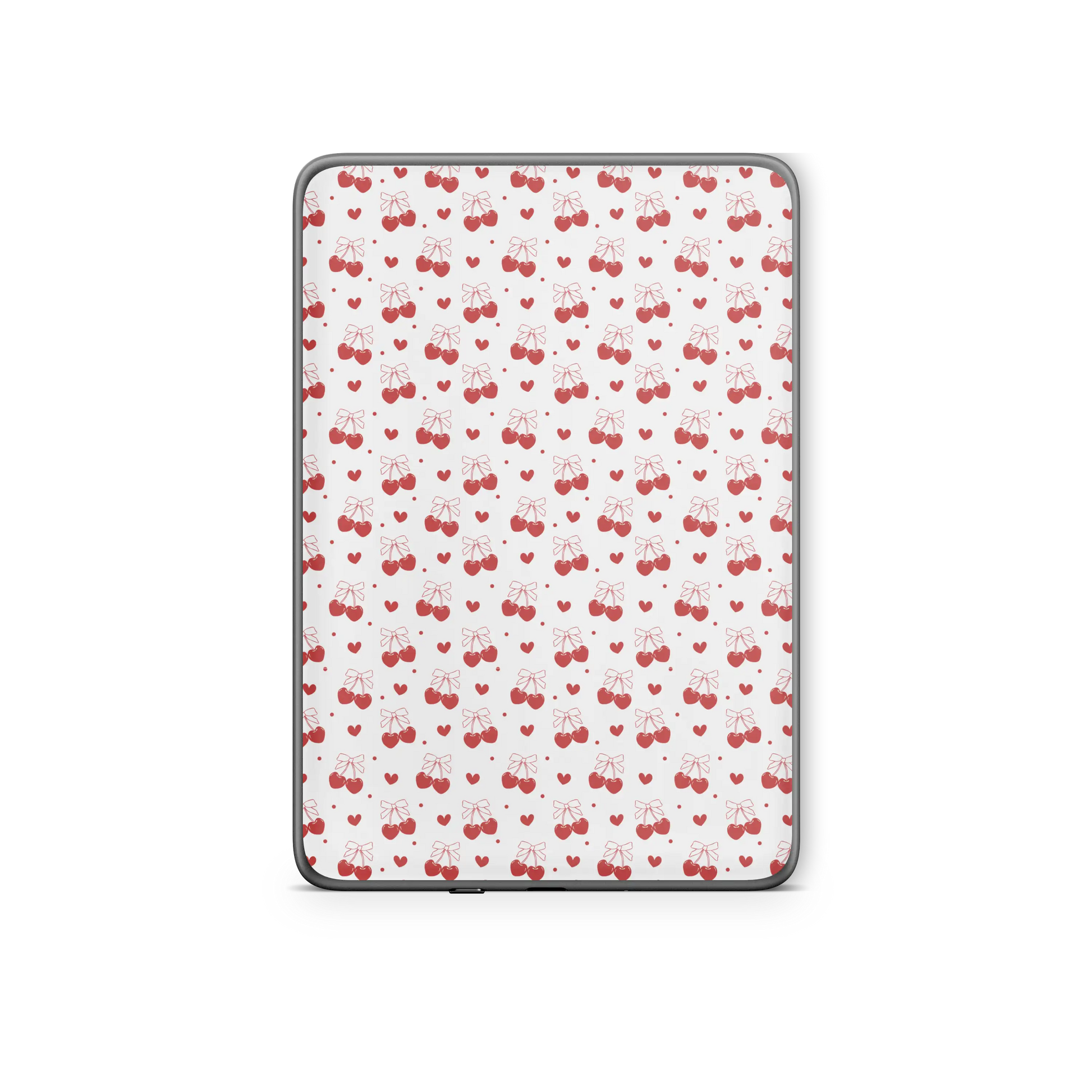 Wrap your Kindle in sweet style with the Cherry Hearts skin. This playful design features vibrant red cherry heart patterns that bring a fun, fresh look to your device while protecting it from scratches and everyday wear. It’s the perfect way to add a dash of personality and cheer to your reading experience.