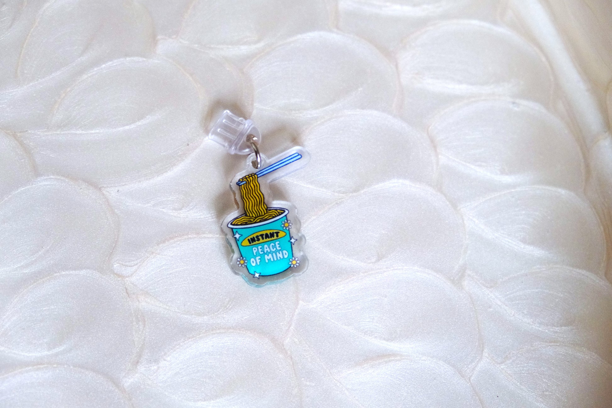 The perfect combo: reading and comfort! This fun clear acrylic ramen charm keeps your Kindle's port safe and reminds you of those cozy, instant peace-of-mind moments.