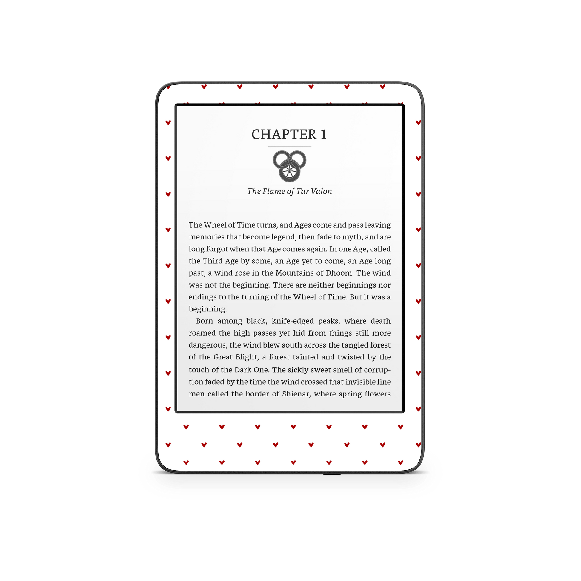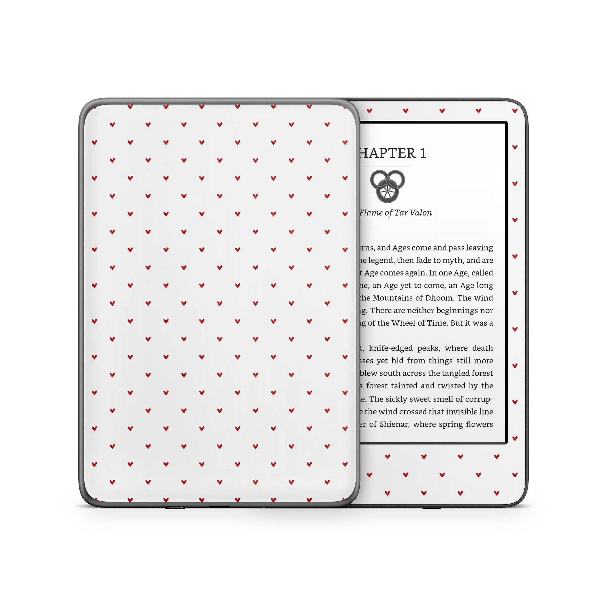 Add a dash of love to your Kindle with our Small Red Hearts Kindle Skin. Designed for romance lovers, this playful cover wraps your device in cute, vibrant red hearts, making every read feel a little more special. It's a charming way to keep your favorite stories close and your Kindle looking delightful.